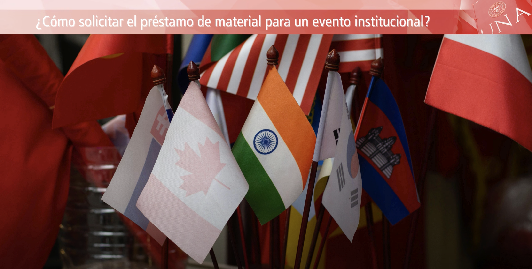 La Oficina de Relaciones Públicas ofrece el préstamos de banderas, manteles, astas, entre otros para los diferentes eventos institucionales. Este trámite se realiza mediante la ventanilla de servicios institucional: www.servicios.una.ac.cr